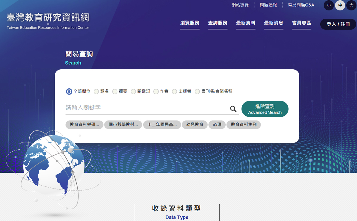 臺灣教育研究資訊網蒐提供國家教育研究院、教育部及各學術單位出版之期刊、圖書、專案研究報告全文,包含性別平等、教育類期刊論文、國內教育類研討會論文等。