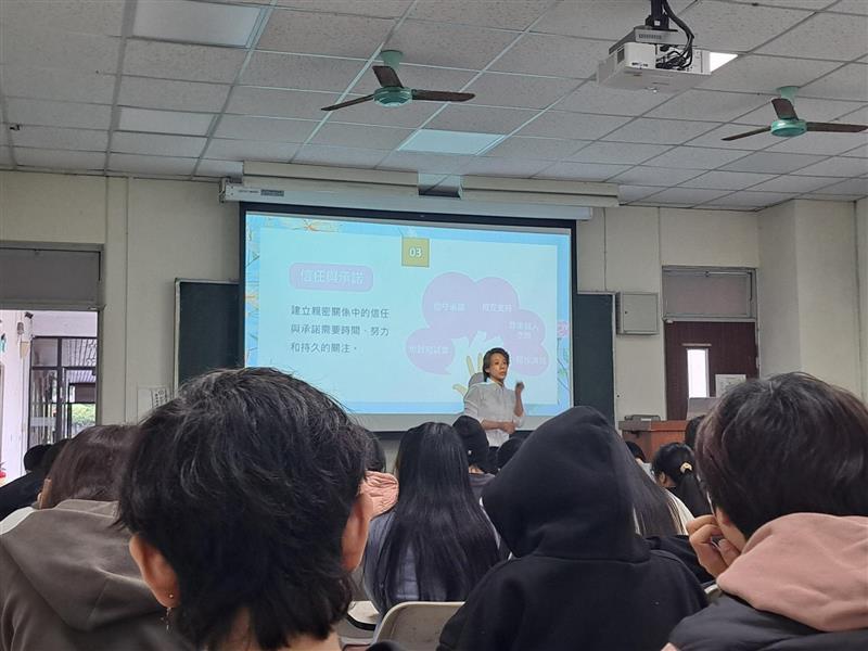 講師介紹親密關係的要素,鼓勵同學在關係中保有自我主體性,同時維持正向關係。